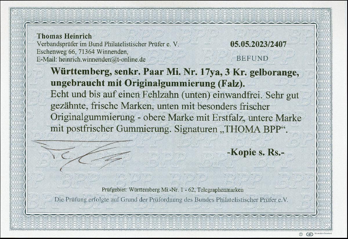 | Prüfer: | Heinrich, Thomas (BPP (Bund Philatelistischer Prüfer)) |