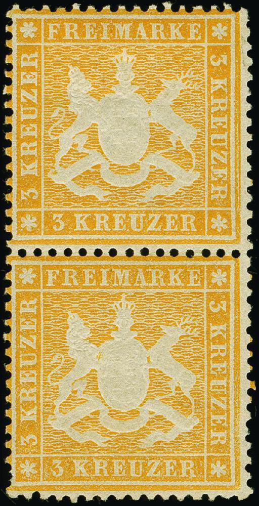| Zusatzinformationen und Suchstichworte: | 382. Auktion Heinrich Köhler 18. – 23. September 2023 Los 4209 3 Kr. gelborange im senkrechten Paar, sehr schön farbfrisch mit guter Wappenprägung, die untere Marke postfrisch, die obere sauber ungebraucht, unten ein Fehlzahn, sonst tadellose und sehr attraktive Einheit, sign. Thoma BPP sowie Befund Heinrich BPP (2023) Ausruf 100,00 EUR |