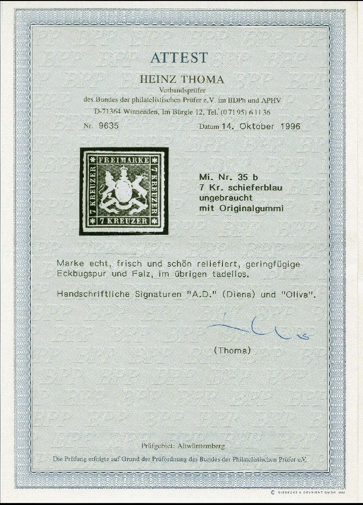 | Prüfer: | Thoma, Heinz (BPP (Bund Philatelistischer Prüfer)) |