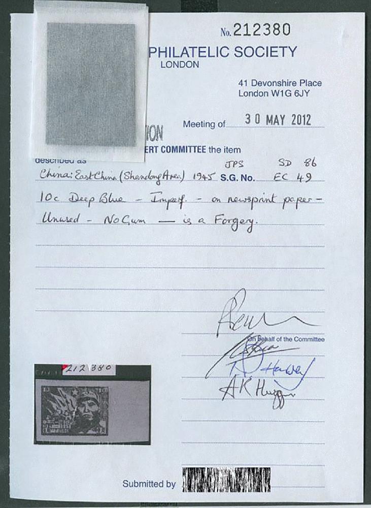 | Prüfgebiet: | China 1930 bis 1950 - kommunistische Ausgaben |