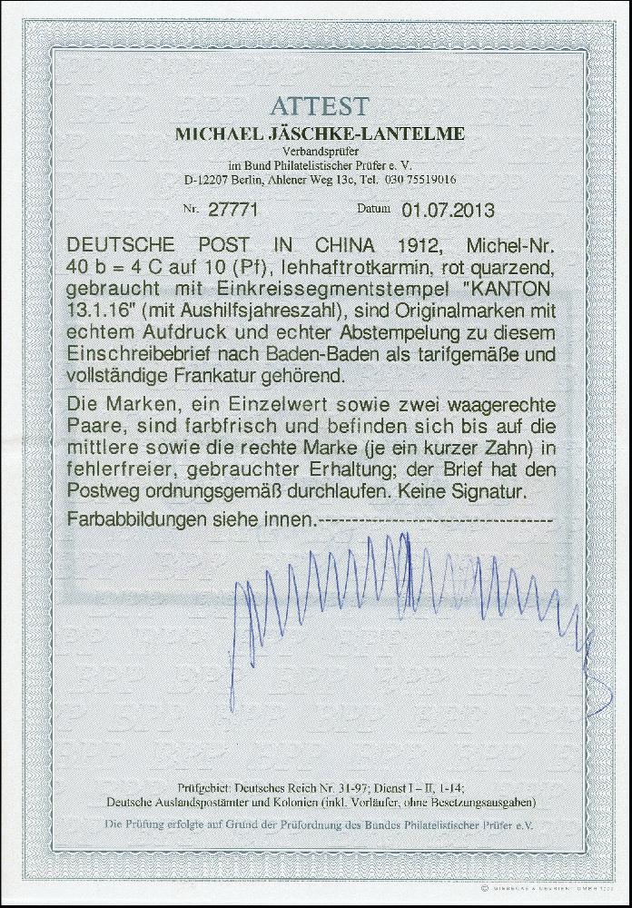 | Prüfer: | Jäschke-Lantelme, Michael (BPP (Bund Philatelistischer Prüfer)) |