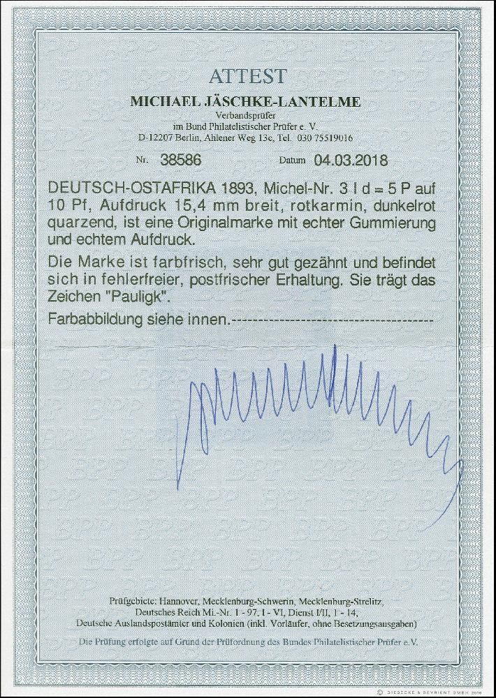 | Prüfer: | Jäschke-Lantelme, Michael (BPP (Bund Philatelistischer Prüfer)) |