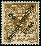 | Zusatzinformationen und Suchstichworte: | 382. Auktion Heinrich Köhler 18. – 23. September 2023 Los 3596 1896, Krone/Adler 2 P. auf 3 Pfg., farbfrisch, sehr gut gezahnt, postfrisch, tadellos, idealloses Stück dieser seltenen Nuance, Fotoattest Jäschke-Lamtelme BPP (2018) Ausruf 400,00 EUR |
