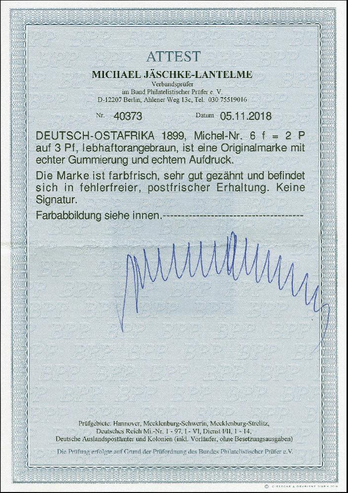| Prüfer: | Jäschke-Lantelme, Michael (BPP (Bund Philatelistischer Prüfer)) |