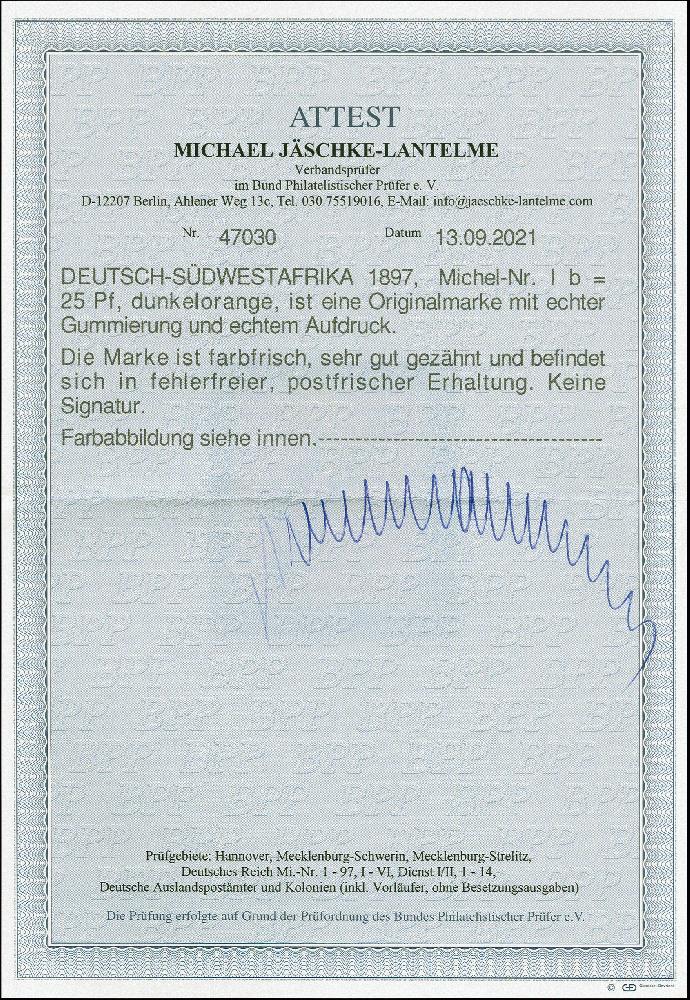 | Prüfer: | Jäschke-Lantelme, Michael (BPP (Bund Philatelistischer Prüfer)) |