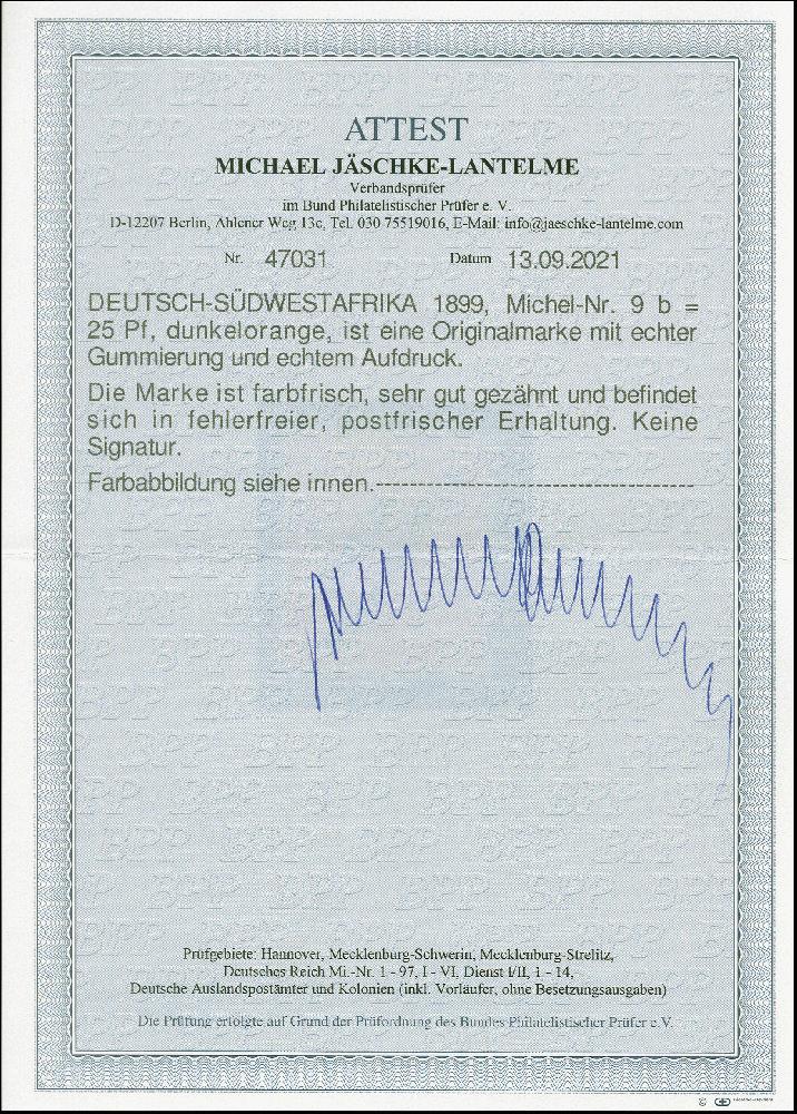 | Prüfer: | Jäschke-Lantelme, Michael (BPP (Bund Philatelistischer Prüfer)) |