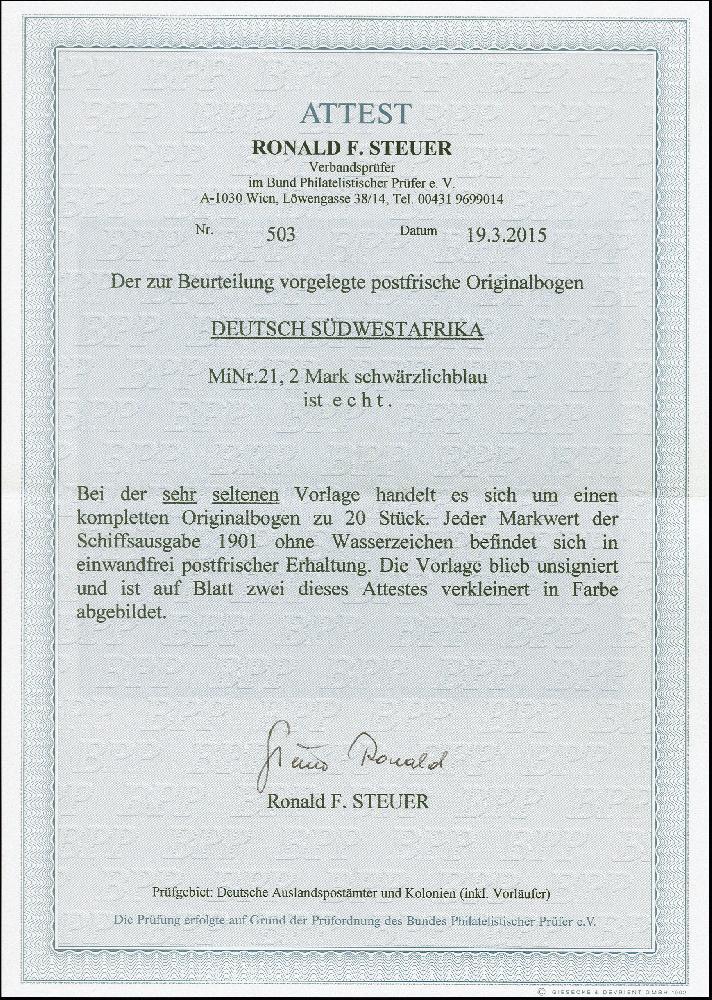 | Prüfer: | Steuer, Ronald F. (BPP (Bund Philatelistischer Prüfer)) |