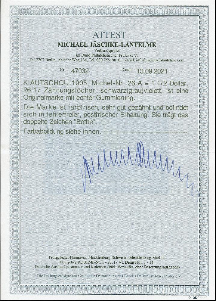 | Prüfer: | Jäschke-Lantelme, Michael (BPP (Bund Philatelistischer Prüfer)) |