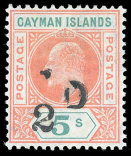 | Zusatzinformationen und Suchstichworte: | 62. Golden Oak Online Auktion 25.-26. August 2023 Los 18 Kaiman-Inseln Kaimaninseln, 1907, König Edward VII, ½d auf 5er lachs und grün (SG 18), außergewöhnlich schön, Originalgummi, kleiner Falz, Pracht, mit 2002 B. P. A. Attest. Scott 18 $325, SG £325 ($400) ; Schätzpreis $100 - 150 Ausruf 100,00 USD |