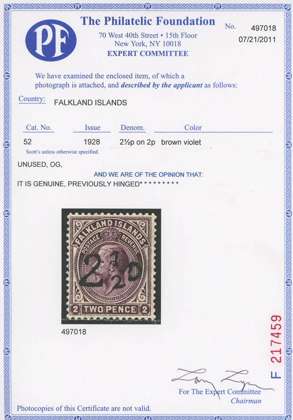 | Prüfer: | The Philatelic Foundation, (Prüferkommission) |