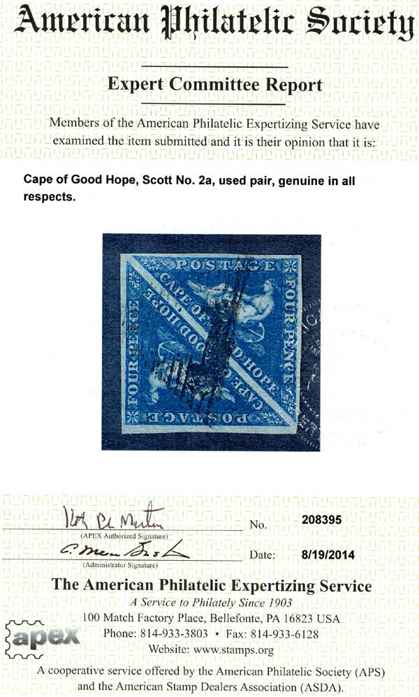 | Zusatzinformationen und Suchstichworte: | 62. Golden Oak Online Auktion 25.-26. August 2023 Los 98 Kap der Guten Hoffnung Südafrika: Kap der guten Hoffnung, 1853, Dreieckiger, Perkins Bacon Druck, 4d tiefblau auf tief bläuliches Papier (SG 2), Paar, ringsum vollrandig, Pracht, mit 2014 A. P. S. Attest. Scott 2a $825, SG £600 ($740) ; Schätzpreis $250 - 350 Ausruf 180,00 USD |