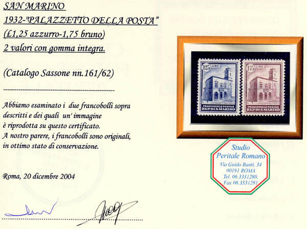 | Zusatzinformationen und Suchstichworte: | 62. Golden Oak Online Auktion 25.-26. August 2023 Los 190 San Marino San Marino, 1932, Generalpostverwaltung komplett (134-138), Satz von 5, Originalgummi, postfrisch, Pracht, mit 2004 Romano Attest für die 2 hohe Werte. Sassone 159-163 € 1,750 ($1,910), Scott $1,258; Schätzpreis $300 - 400 Ausruf 220,00 USD |