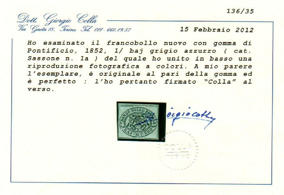 | Prüfer: | Colla, Giorgio (APFIP (Associazione Periti Filatelici Italiani Professioni.)) |