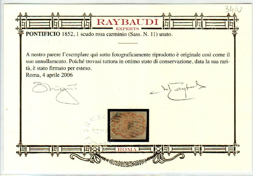 | Zusatzinformationen und Suchstichworte: | Filatelia Sammarinese Saalauktion 8. - 9. September 2023 Los 326 Italien Staaten Kirchenstaat I em. 1 scudo rosa carminio (11) con grandi margini, bianchi, debolmente ann. con la griglia. Splendido e raro. Cert. Ray. Catalog price: 7500 EUR Ausruf 800,00 EUR |