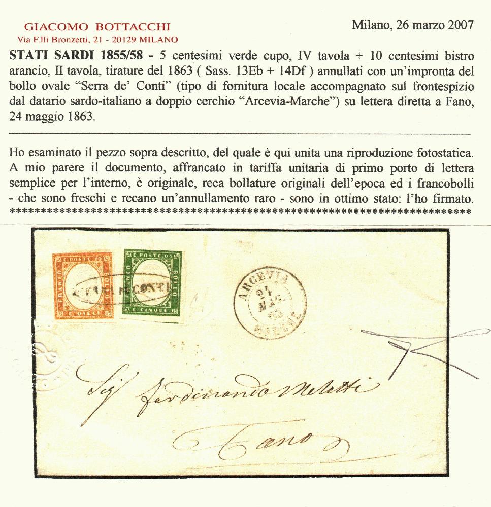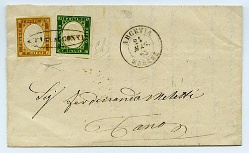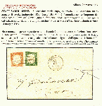 | Zusatzinformationen und Suchstichworte: | Filatelia Sammarinese Saalauktion 8. - 9. September 2023 Los 1284 Italien Staaten Kirchenstaat SERRA DE CONTI - ovale ann. di 5 + 10 c. Sardegna (13Eb+14Df) su lett. 24 MAG 63 a Fano. Il 5 c. sfiorato in alto. Punti R1. ED, cert. Bot. Catalog price: 15000 EUR Ausruf 1.000,00 EUR |