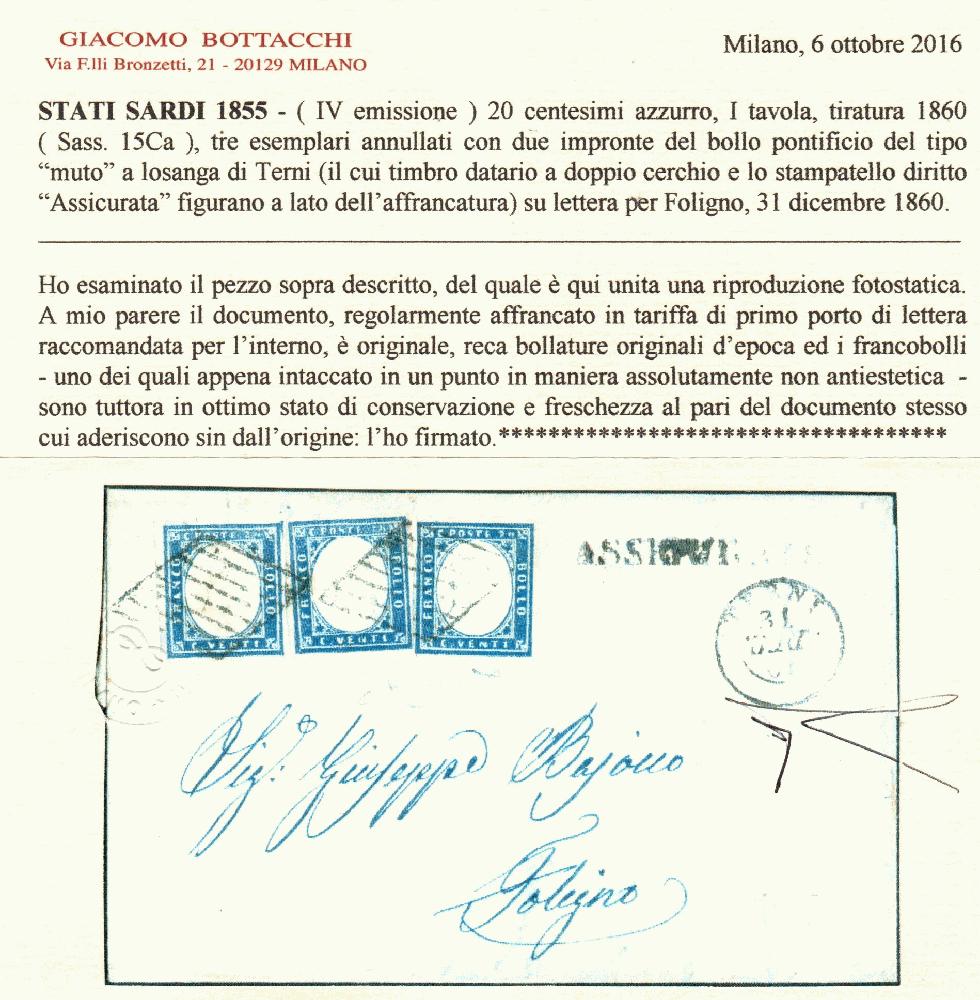 | Zusatzinformationen und Suchstichworte: | Filatelia Sammarinese Saalauktion 8. - 9. September 2023 Los 1285 Italien Staaten Kirchenstaat ASSICURATA - SD su lett. da TERNI 31 DEC 60 a Foligno con Sardegna 20 c., 3 es. di cui uno legg. intaccato (15Ca) ann. a griglia. Rara. Ray., cert. Bot Ausruf 800,00 EUR |