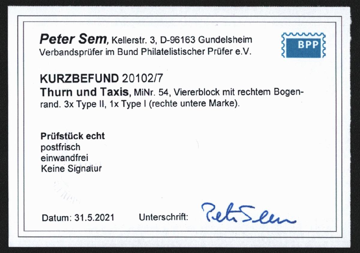 | Prüfgebiet: | Altdeutschland Thurn und Taxis |