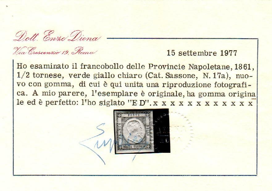 | Zusatzinformationen und Suchstichworte: | Filatelia Sammarinese Saalauktion 8. - 9. September 2023 Los 312 Italien Staaten Neapel Gov. Provvisorio 1/2 t. verde giallo chiaro (17a) gomma integra. Bello e raro. Ray., cert. ED. Catalog price: 1700 EUR Ausruf 220,00 EUR |