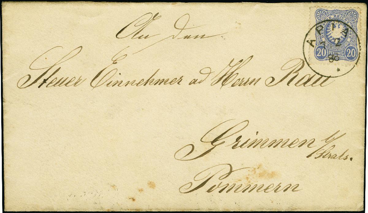 | Zusatzinformationen und Suchstichworte: | 382. Auktion Heinrich Köhler 18. – 23. September 2023 Los 3676 "APIA 7/2 88" der kleine EKr. sauber und klar auf farbfrischer und gut gezähnter 20 Pfg. auf Briefkuvert nach Grimmen mit rückseitigem Ankunftstempel, der Brief unten unbedeutenden Fleckchen, sonst in tadelloser und sehr schöner Erhaltung. Eine der großen Seltenheiten, es sind nur eine Handvoll Ganzstücke mit diesem Stempel registriert, Fotoattest Jäschke-L. BPP (2023) Ausruf 3.000,00 EUR |