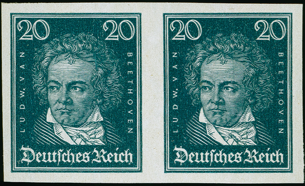 | Zusatzinformationen und Suchstichworte: | 382. Auktion Heinrich Köhler 18. – 23. September 2023 Los 5514 1926, Ludwig van Beethoven 20 Pfennig ungezähnt im waagerechten Paar, postfrisch mit Fingerspuren, sonst einwandfrei, sehr selten, unsigniert Ausruf 1.000,00 EUR |