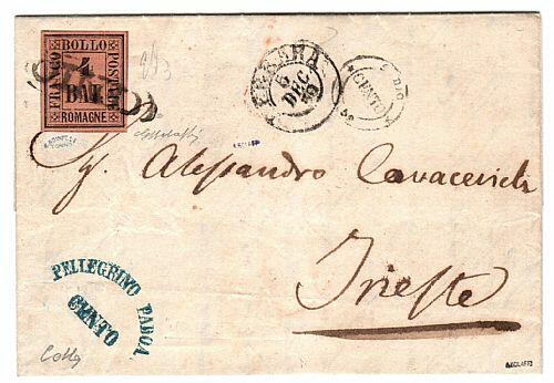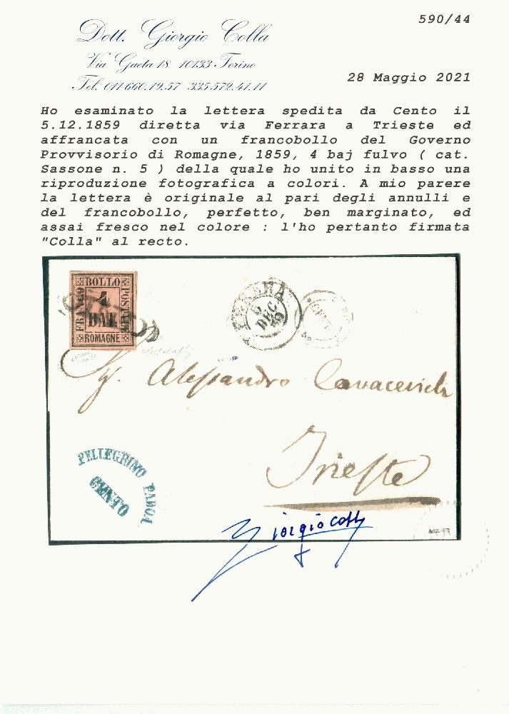 | Zusatzinformationen und Suchstichworte: | Filatelia Sammarinese Saalauktion 8. - 9. September 2023 Los 1298 Italien Staaten Romagna Da Cento - SD ann. 5 DIC 59 a Trieste con 4 b. fulvo (5) ben marginato. A lato doppi cerchi di Cento e Ferrara. Molto bella. EmD, G. Bolaffi, cert. Colla Ausruf 600,00 EUR |