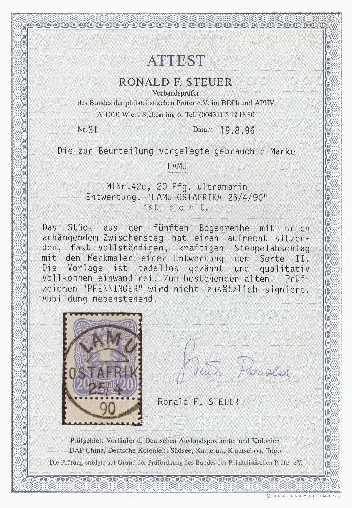 | Prüfgebiet: | Deutsche Auslandspostämter Lamu |