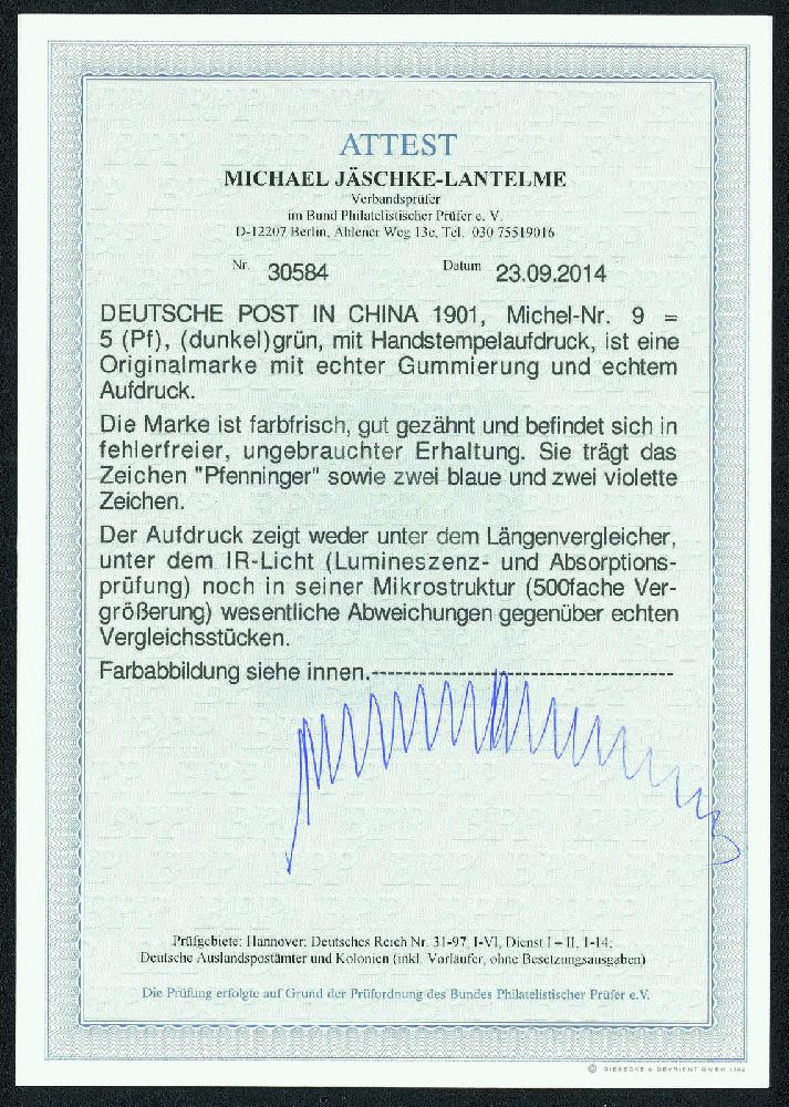 | Prüfer: | Jäschke-Lantelme, Michael (BPP (Bund Philatelistischer Prüfer)) |