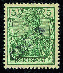 | Zusatzinformationen und Suchstichworte: | Gert Müller 119. Auktion 24. - 26. August 2023 Los 2606 Deutsche Auslandspost China 5 Pfg. Germania mit Handstempel "CHINA", farbfrisch und gut gezähnt, tadellos ungebraucht mit Originalgummierung. Fotoattest "FEHLERFREIE ERHALTUNG" Jäschke-Lantelme BPP Ausruf 300,00 EUR |