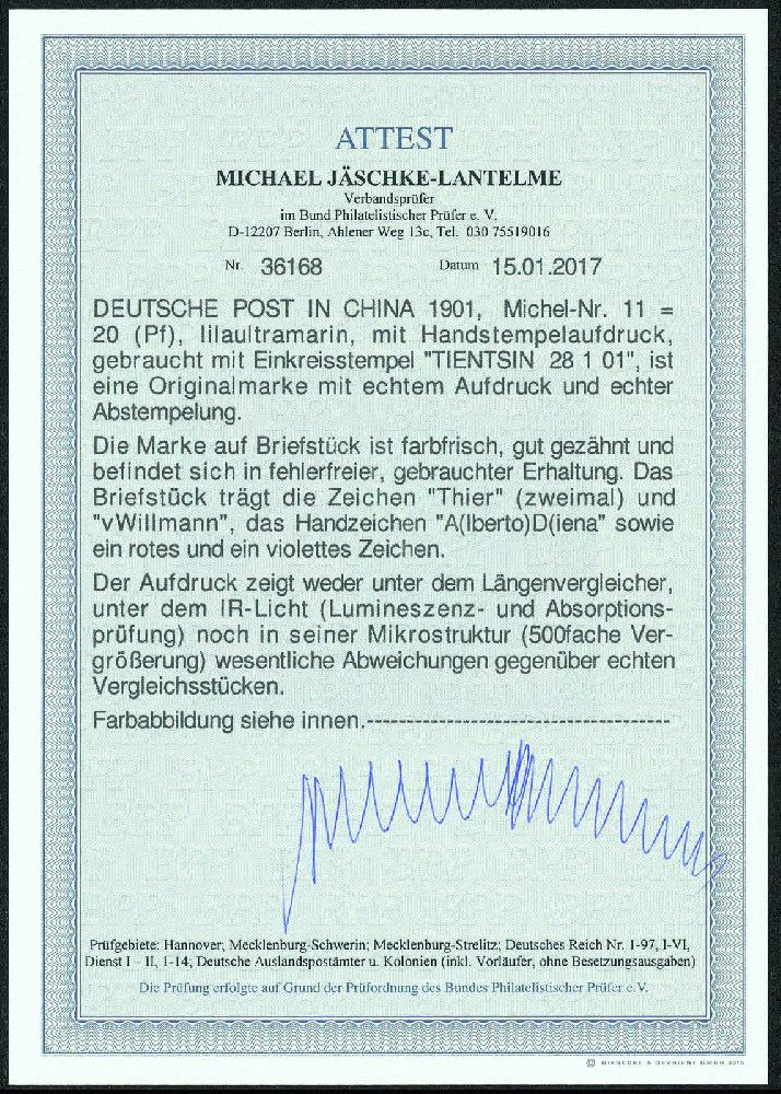 | Prüfgebiet: | Deutsche Auslandspostämter China |
