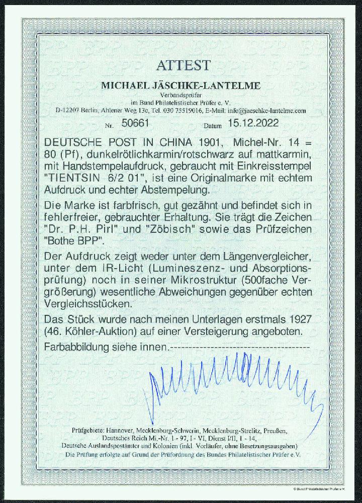 | Prüfgebiet: | Deutsche Auslandspostämter China |