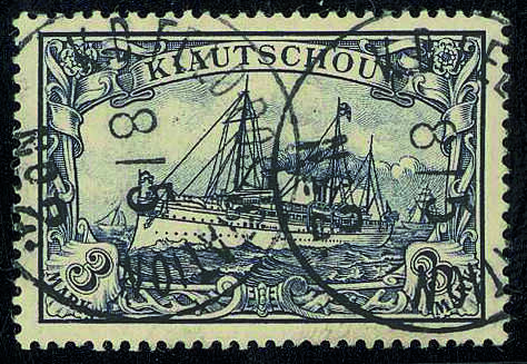 | Zusatzinformationen und Suchstichworte: | Gert Müller 119. Auktion 24. - 26. August 2023 Los 2615 Deutsche Auslandspost China, Petschili Ausgaben Kiautschou 3 Mk. violettschwarz, Kaiseryacht, wundervoll farbfrisch und sehr gut gezähnt, mit zwei klaren K1 "K.D.FELD-POSTSTATION NO.2 8/5". Ein Luxusstück dieses seltenen Petschili-Provisoriums für höchste Ansprüche! Fotoattest "FEHLERFREIE ERHALTUNG" Jäschke-Lantelme BPP. Mi. 3800,- € Zuschlag 1.500,00 EUR |