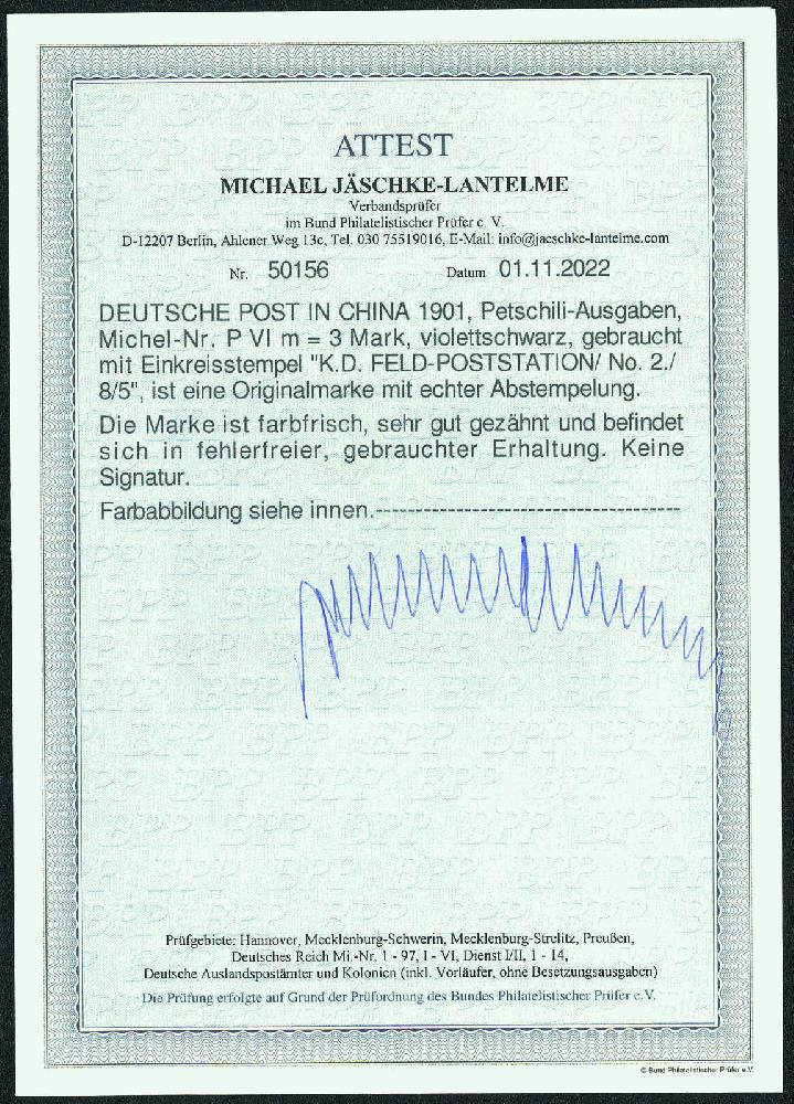 | Prüfgebiet: | Deutsche Auslandspostämter China Petschili-Ausgaben |
