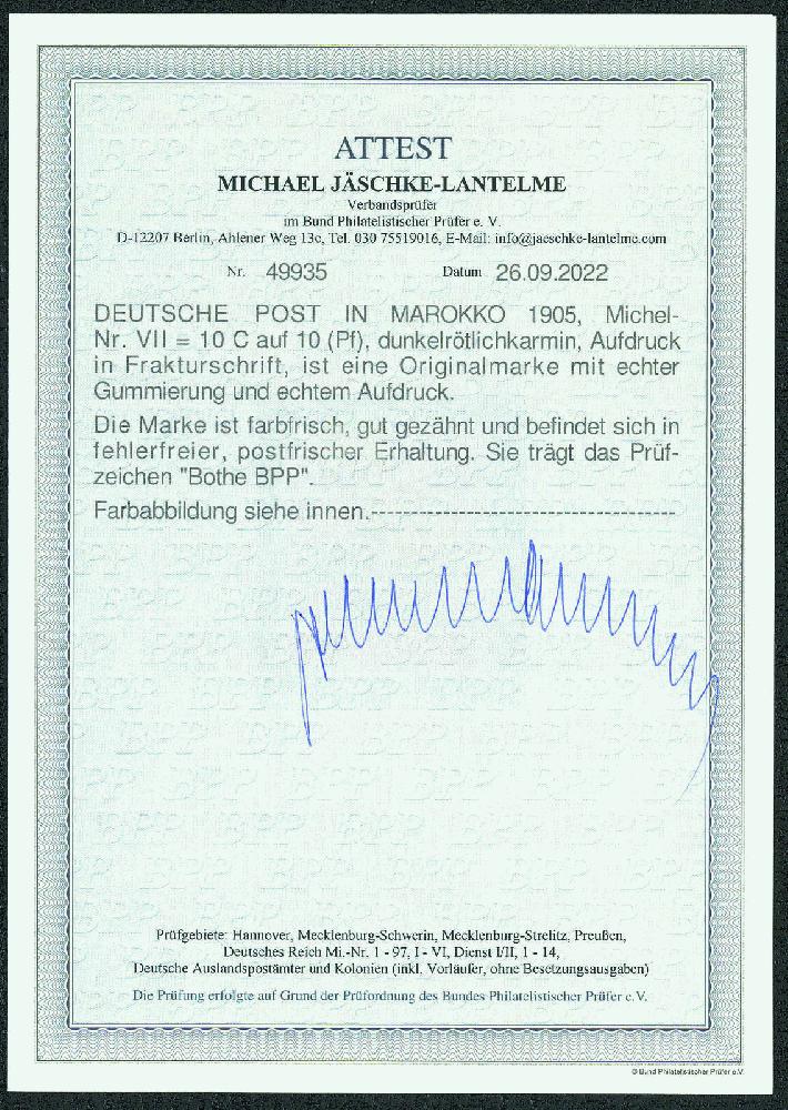 | Prüfgebiet: | Deutsche Auslandspostämter Marokko |