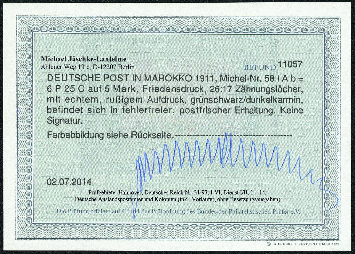 | Prüfgebiet: | Deutsche Auslandspostämter Marokko |