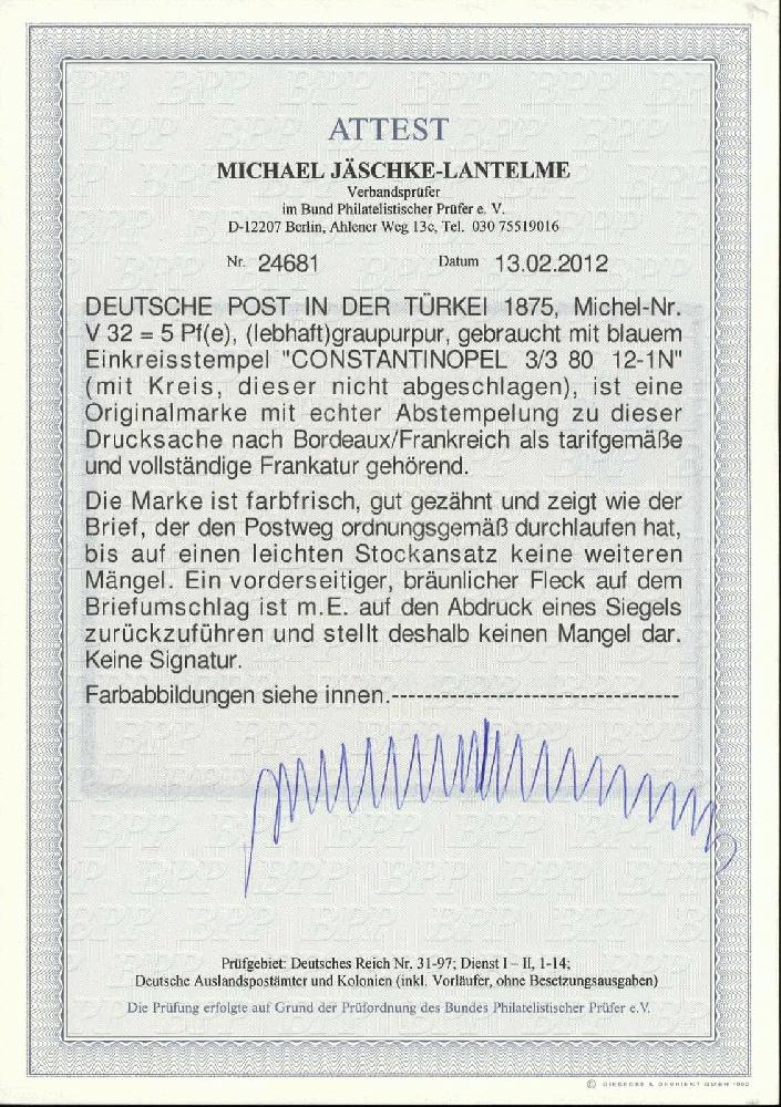 | Prüfgebiet: | Deutsche Auslandspostämter Türkei |