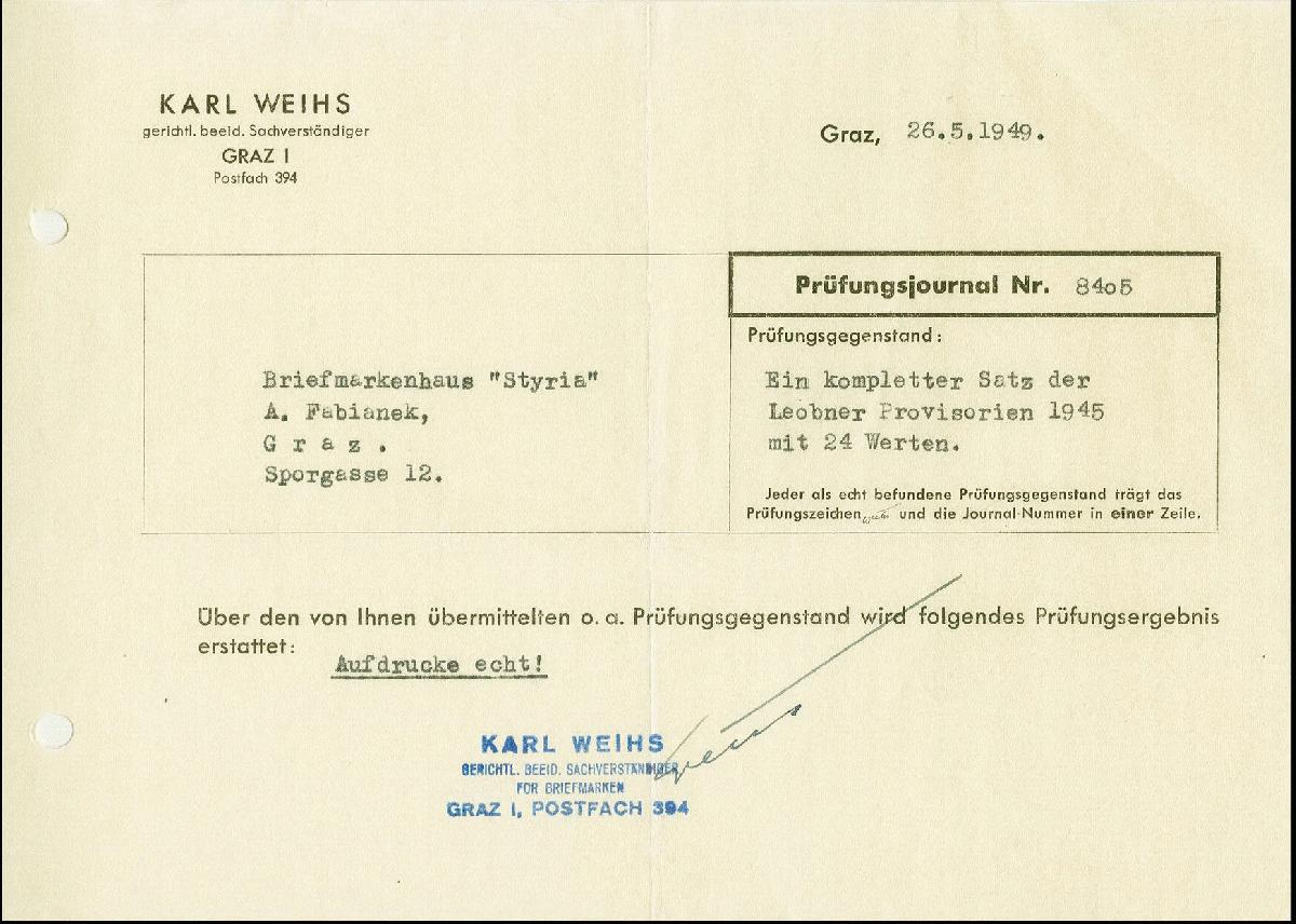 | Prüfgebiet: | Österreich - ab 1945 Lokalausgaben |