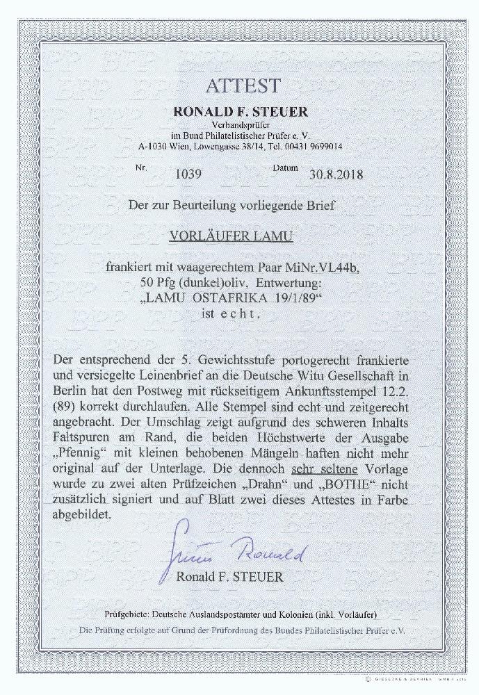 | Prüfgebiet: | Deutsche Auslandspostämter Lamu |