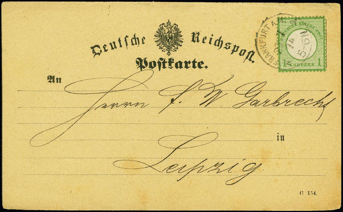 | Zusatzinformationen und Suchstichworte: | 382. Auktion Heinrich Köhler 18. – 23. September 2023 Los 2270 1 Kr. grünlicholiv, gut gezähnt, mit EKr "FRANKFURT a.M. 29 7 74", auf amtlichem Postkartenformular als Drucksache nach Leipzig, Fotoattest Sommer BPP (1997) Ausruf 160,00 EUR |