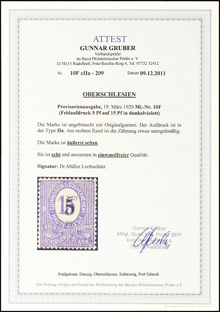 | Prüfer: | Gruber, Gunnar (BPP (Bund Philatelistischer Prüfer)) |