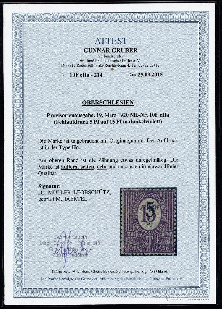 | Prüfer: | Gruber, Gunnar (BPP (Bund Philatelistischer Prüfer)) |