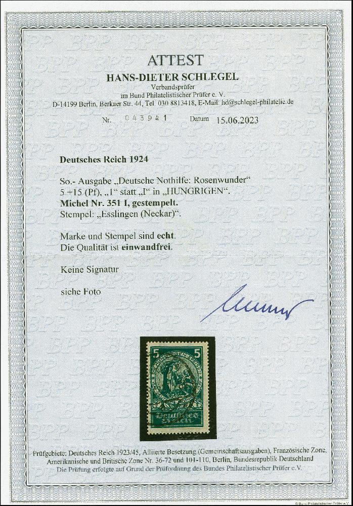 | Prüfer: | Schlegel, Hans-Dieter (BPP (Bund Philatelistischer Prüfer)) |