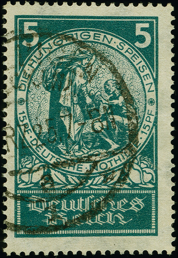 | Zusatzinformationen und Suchstichworte: | 382. Auktion Heinrich Köhler 18. – 23. September 2023 Los 2343 1924, Hungerhilfe 5 Pfg. mit Plattenfehler "1 statt I in HUNGRIGEN", sauber gestempelt "ESSLINGEN", tadellos, ein sehr seltener und markanter Plattenfehler, Fotoattest HD Schlegel BPP (2023) Ausruf 600,00 EUR |