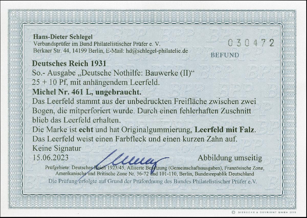 | Prüfer: | Schlegel, Hans-Dieter (BPP (Bund Philatelistischer Prüfer)) |