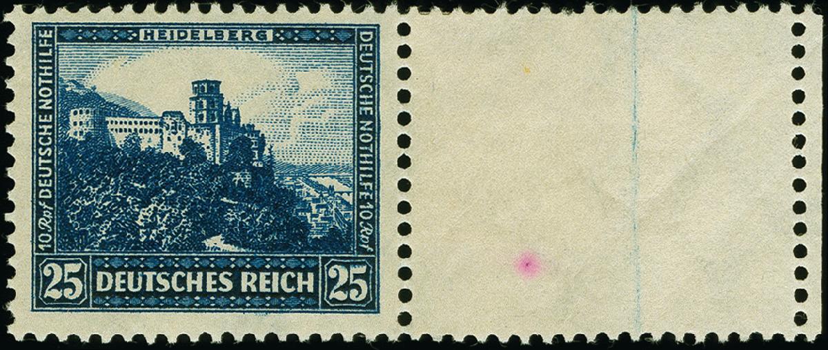 | Zusatzinformationen und Suchstichworte: | 382. Auktion Heinrich Köhler 18. – 23. September 2023 Los 2373 1931, Nothilfe 25 Pfg. mit Leerfeld rechts, sauber ungebraucht, das Leerfeld mit kleinem Fleck und einem kurzen Zahn, sonst tadellos, eine der großen Seltenheiten der Weimarer Republik Ausruf 250,00 EUR |