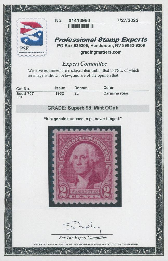 | Zusatzinformationen und Suchstichworte: | Raritan Stamps - 97. Auktion 30. - 31. August 2023 Los 176 USA 1932, Washington Zweihundertjahrfeier, 2c karminrosa, vollständiger Originalgummi, postfrisch, PSE Attest Pracht 98, spezial. Stufe Katalogwert $135 Ausruf 75,00 USD |