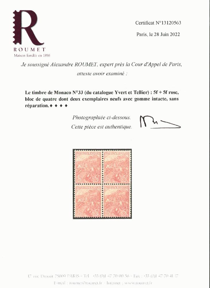 | Zusatzinformationen und Suchstichworte: | Lugdunum 125. Auktion 18. September 2023 Los 330 Monaco MONACO : MARIAGE 5F + 5F Bloc de 4 dont 2 exemplaires neuf ** et 2 exemplaires neuf *. Trés frais. Cote 7600€ pour les timbres détachés. Certificat ROUMET. Superbe Ausruf 1.850,00 EUR |