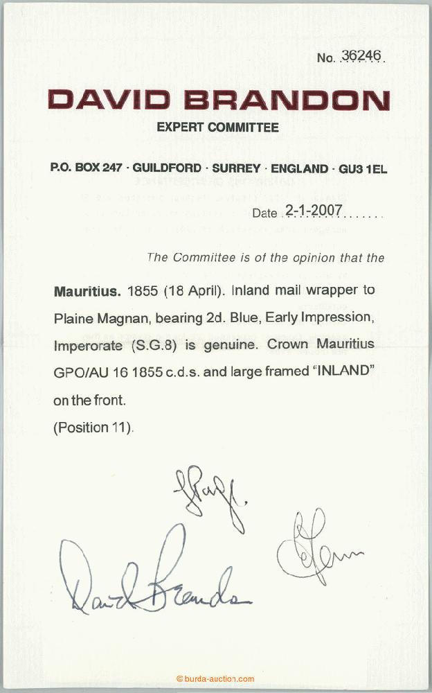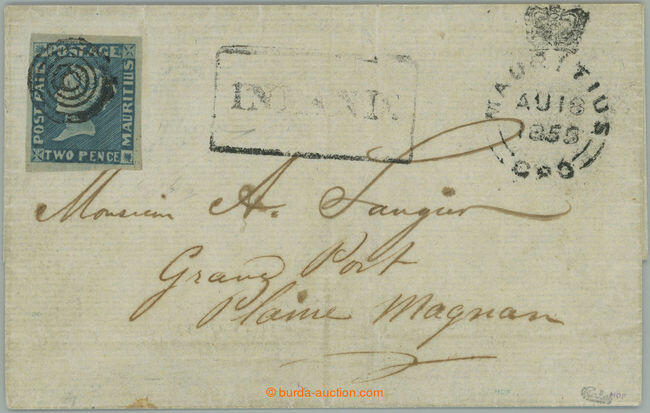| Zusatzinformationen und Suchstichworte: | Burda 72. Auktion 16. - 17. September 2023 Los 756 Mauritius 1855 SG. 8, blau MAURITIUS Post Paid 2P blau, Frühdruck auf Brief nach Plaine Magnan, breitrandig, gerundet Poststempel und MAURITIUS GPO/AU 15/1855 und Rahmen Binnenland; selten Brief, ex Vikram Chand, Attest Brandon und signiert Calves, c. v. £30,000! Ausruf 22.979,00 EUR |