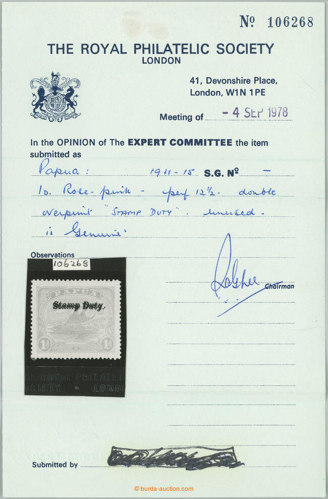 | Prüfer: | RPSL, Royal Philatelic Society (Prüferkommission) |