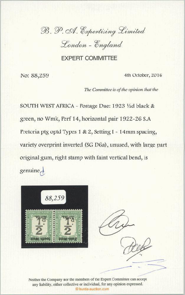 | Zusatzinformationen und Suchstichworte: | Burda 72. Auktion 16. - 17. September 2023 Los 845 Südwestafrika 1923 SG. D6a, Portomarke ½P, Paar mit kopfstehende Aufdrucke Südwestafrika und ZUID Westafrika; Pracht Paar mit Attest BPA, c. v. £900 Ausruf 383,00 EUR |