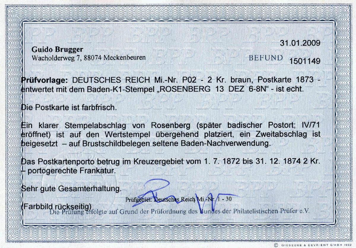 | Zusatzinformationen und Suchstichworte: | AAK Phila GmbH 79. Auktion 14. - 16. September 2023 Los 1081 (D) Altdeutschland Baden ROSENBERG, seltener nachverwendeter K1 2x a. DR 2 Kr. GA m. Befund Brugger BPP "sehr gute Gesamterhaltung" Ausruf 25,00 EUR |